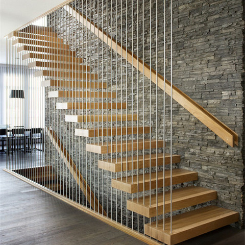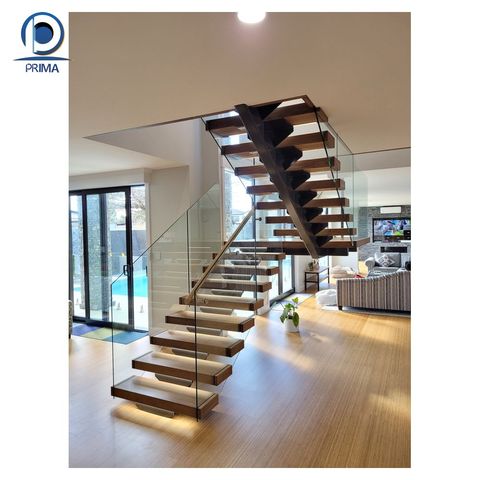 Foshan prezzo di fabbrica scale moderne scale interne galleggianti Design dritto di lusso in legno massello in acciaio fabbricato